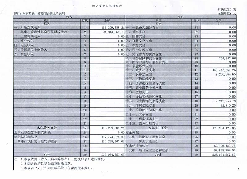 年度收入支出决算总表