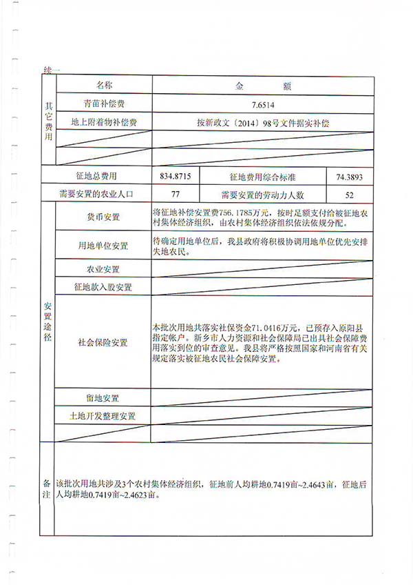 原阳县2015年度第二批城乡挂钩试点项目征收土地一书三方案